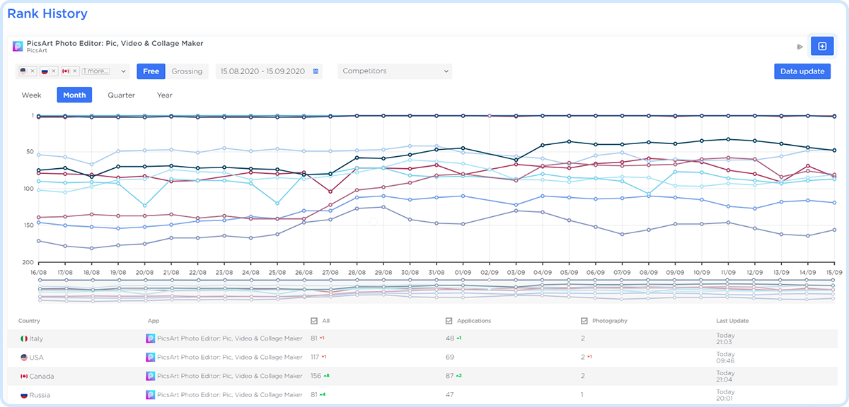 In the Fivorix Rank History, you will see the position of the app, which was recorded by our system while scanning the market (once a day, scanning time may vary)