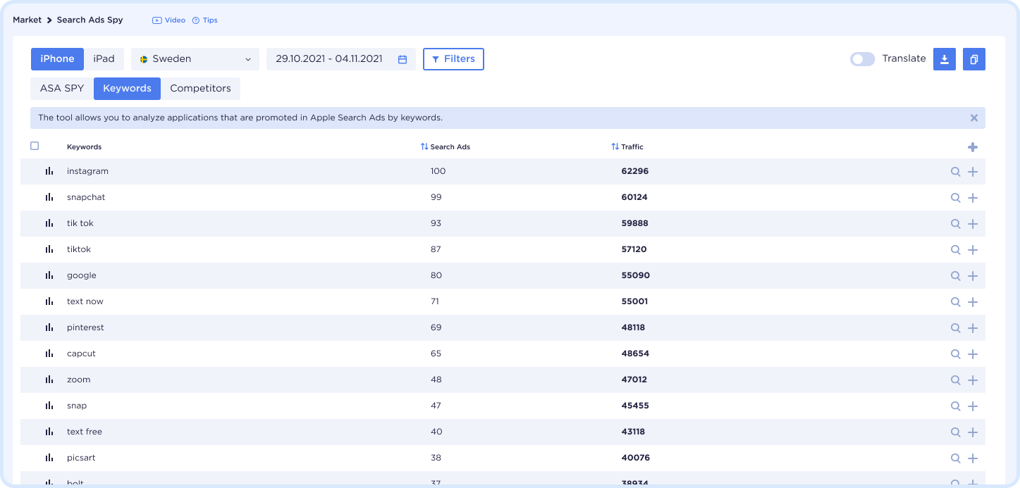 - Traffic, Search Ads, Complexity, Effectiveness and Suggestions for All Keywords