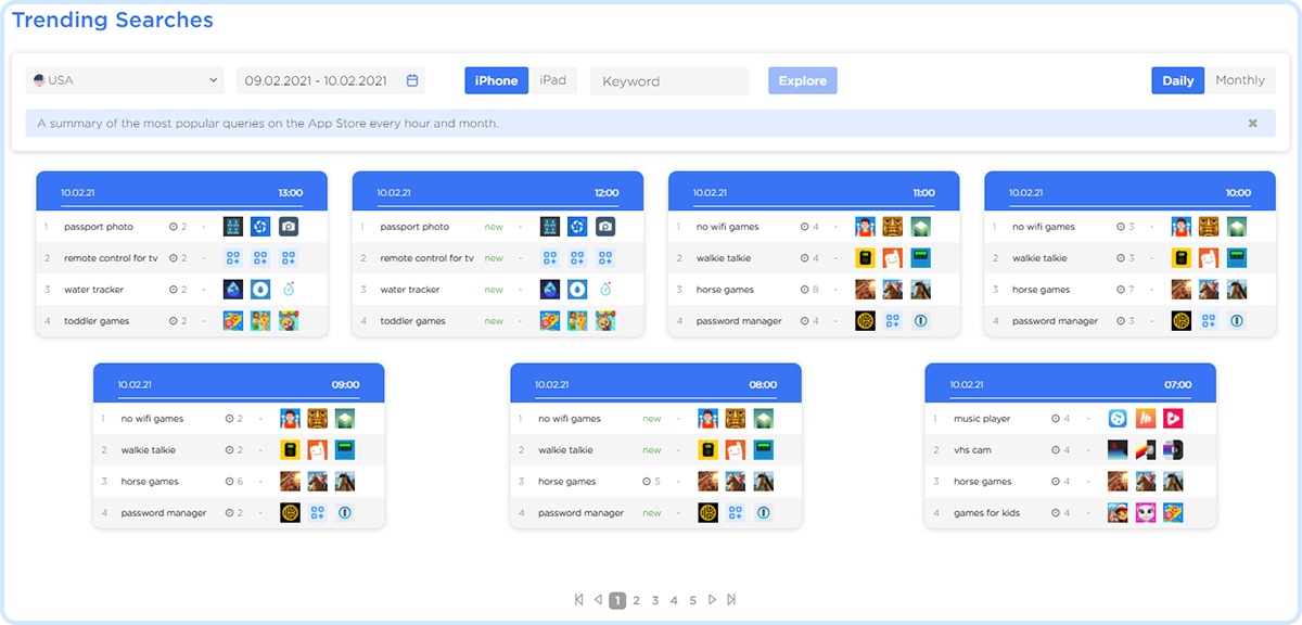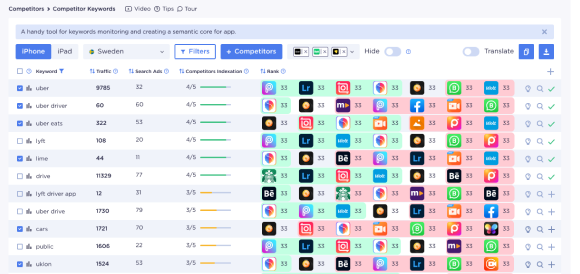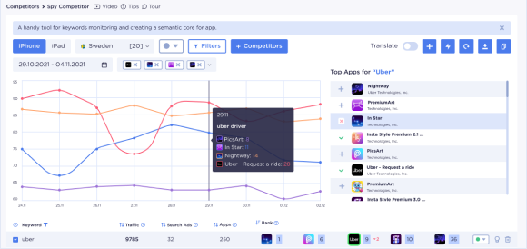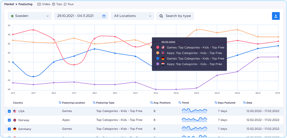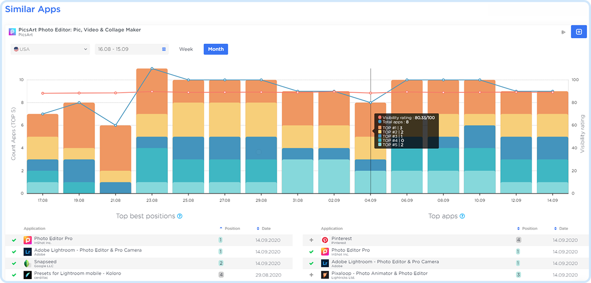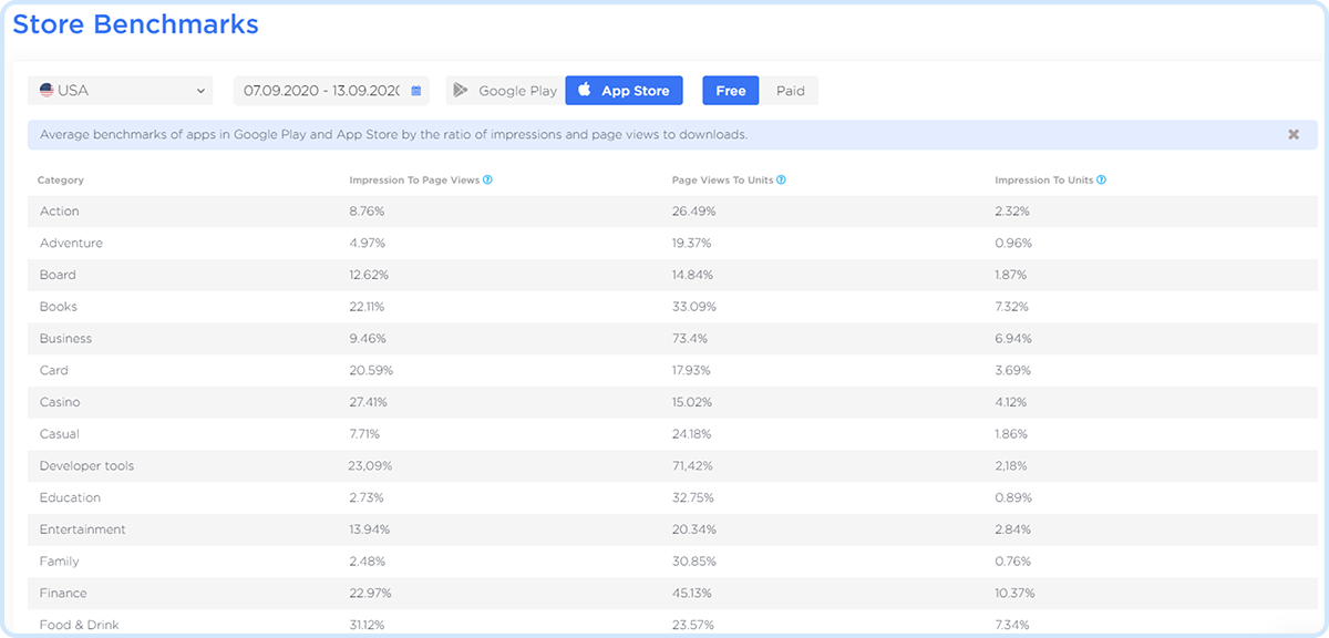 You will be able to find data on downloads and revenue for any app that has a rating (position) in the category of mobile applications market using Fivorix